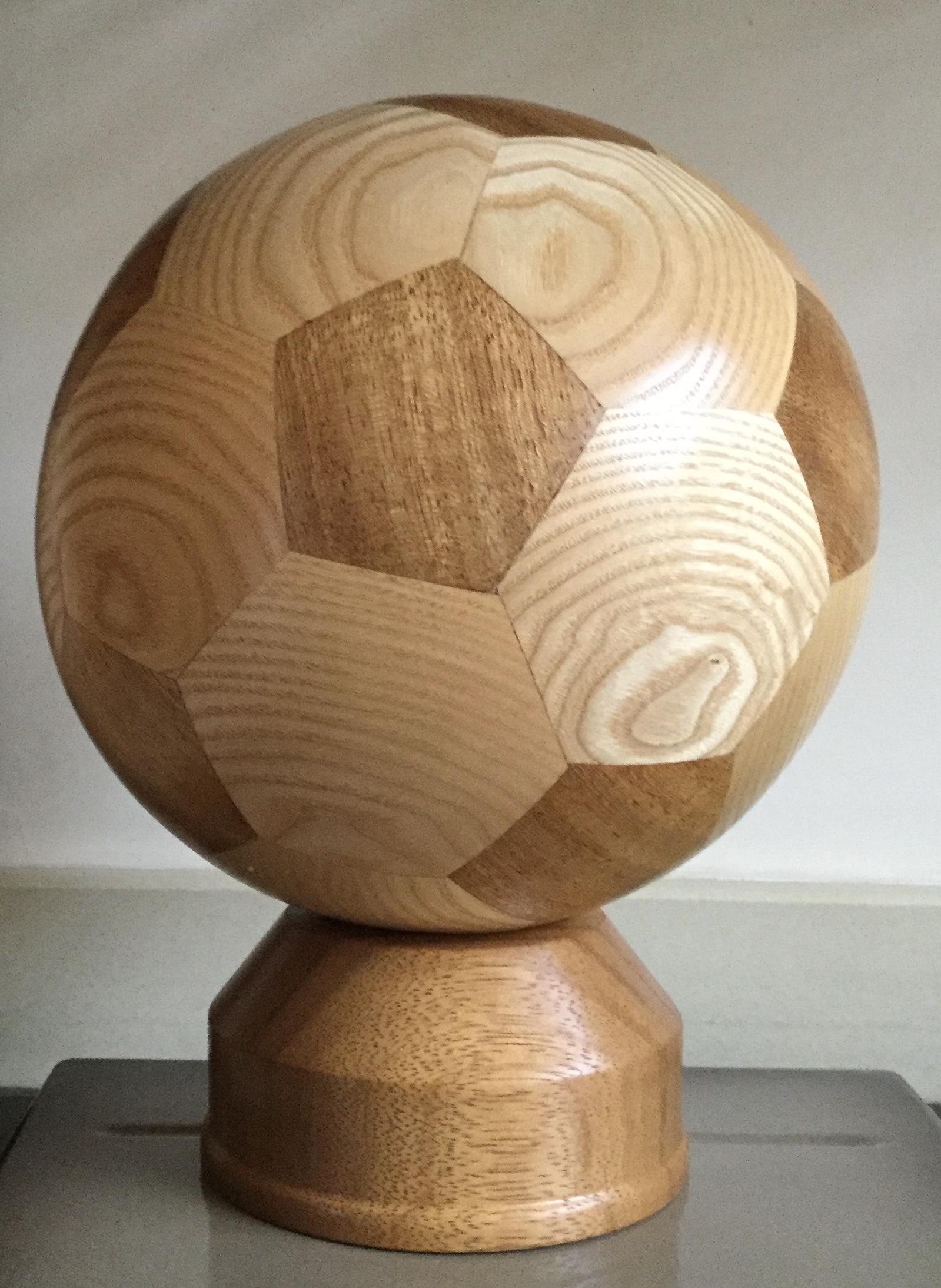 Truncated Icosahedron aka soccer ball. 8.5 inches diameter, Ash